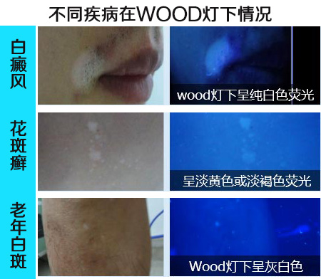 伍德灯是白癜风检查的第一步,是一种新的鉴别白癜风标准仪器,通过金属片氧化还原获320-400nm长波紫外线,根据病变部位对WOOD光的荧光反应进行临床诊断,还可以检测到隐性白斑。